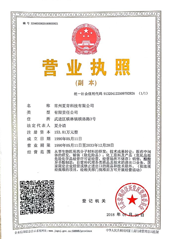 電 話:0519-88783621 郵 箱:xjq@xialichem.com